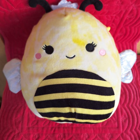 Squishmallows Piper kosedyr utformet som en ananasfigur. Myk plysj med broderte detaljer i gult, hvitt og grønne blader på toppen. Egnet som kosedyr eller pyntefigur på barnerom. Anbefalt alder fra 3 år ifølge merkelappen.
