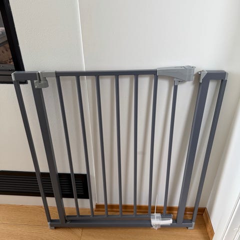 BabyDan sikkerhetsgrind i hvit metallutførelse. Grind egnet for bruk i døråpninger eller ved trapper for å sperre av områder for små barn. Justerbar bredde innenfor produktets standardmål. Åpnes og lukkes med låsemekanisme øverst. Monteres med trykkfester mot vegg eller karm, uten behov for boring, avhengig av underlag og monteringsanvisning fra produsent.