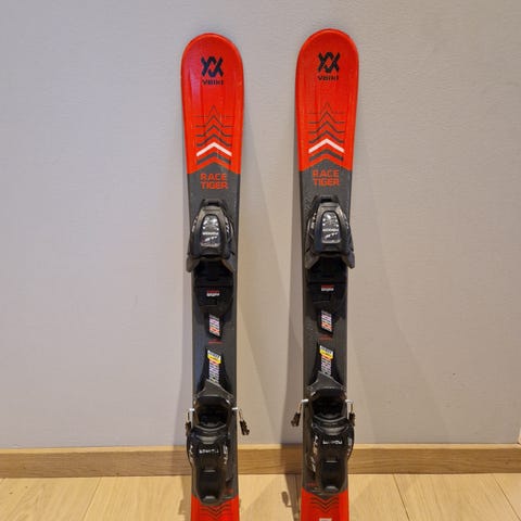 Völkl alpinski 125 cmmed bindinger i flerfarget design (turkis, svart, oransje og beige). Skiene har midtbredde som passer til allround/alpint bruk i preparerte løyper og lett variert føre. Monterte alpinbindinger med justerbar hæl- og tådel. Egnet for bruk i alpinbakke for ungdom