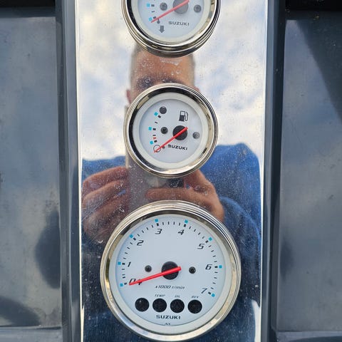 Klistremerkene på Suzuki-motorer blir for slitt og stygge og eneste løsning er da å skifte til slike. Ny pris på disse er 3.500 kr for settet.