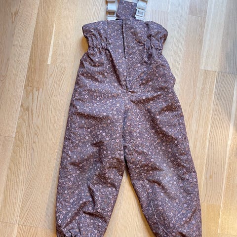 Kuling Going Skjell Bukser Plum Flower i str. 116. Pent og lite brukt. Avtakbare seler og justerbare, avtakbare fotstropper i silikon. Glidelås i siden. Kjempefin farge og mønster. En anmerkning nederst bak på ene foten, se bilde. Nypris 649kr