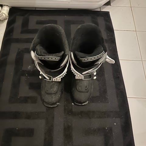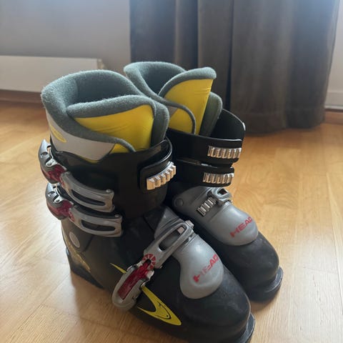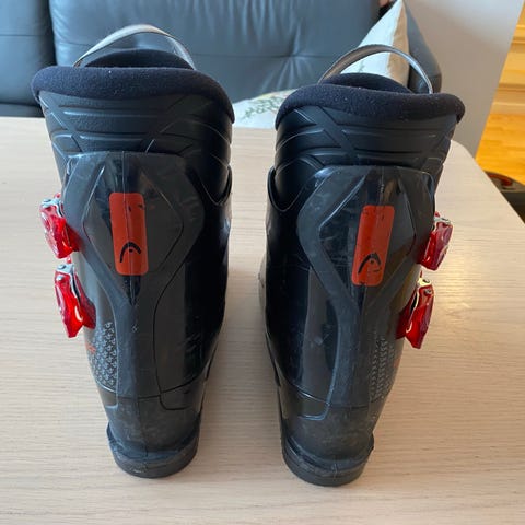 Head og Nordica alpinstøvler i svart og grå farge. Begge par har flere justerbare spenner i metall og polstret innerstøvel for bedre passform og komfort. Sålen på Nordica-støvlene viser størrelseindikasjon 240–245mm/38str. Støvlene passer til vanlig alpinbruk i skianlegg og er kompatible med standard alpinbindinger.