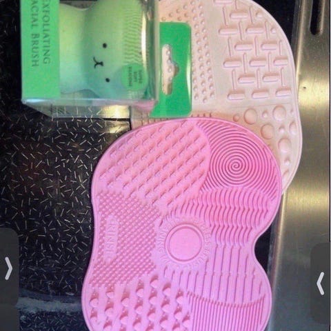 toalettmappe for dame i annet materiale. Mappen har trykk med teksten "But first, selfcare" og blomstermotiv på utsiden. Egnet til oppbevaring av toalettartikler, sminke eller småting ved reise og hjemmebruk.