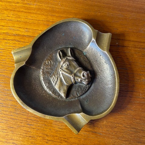 Vintage askebeger i messing formet som hestehode.
