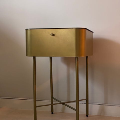 Antikk håndlaget nattbord med lampe fra tidlig 1900tall
