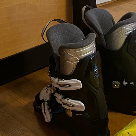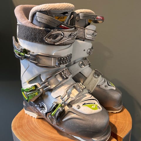 Atomic Hawx alpinstøvler i størrelse 23.0-23,5. Støvlene har fire justerbare spenner og powerstrap øverst for god tilpasning rundt leggen. Ytterskall i hard plast med svart og hvit fargekombinasjon, og innersko med lys polstring for komfort. Passer til vanlig alpinbruk i standard alpinbindinger.