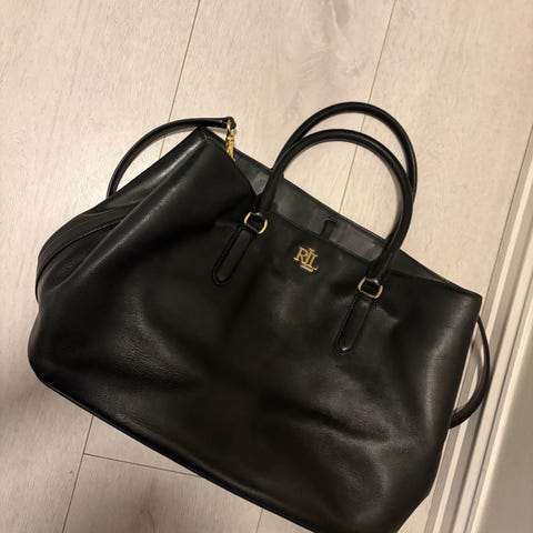 Lauren Ralph Lauren bucket bag i skinn. Vesken er laget av glatt brunt lær med avtakbar skulderrem. Lukkes med snøring øverst og har metall-detaljer i gullfarge. Innside i kontrastfarge. Passer til hverdagsbruk og til å bære med seg nødvendigheter som lommebok, nøkler, mobil og små personlige eiendeler.