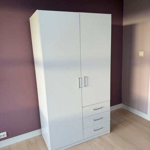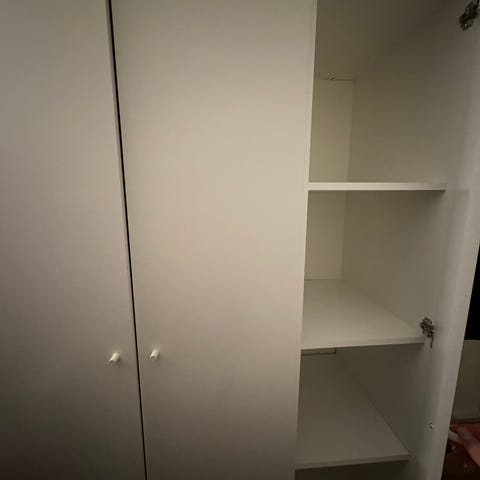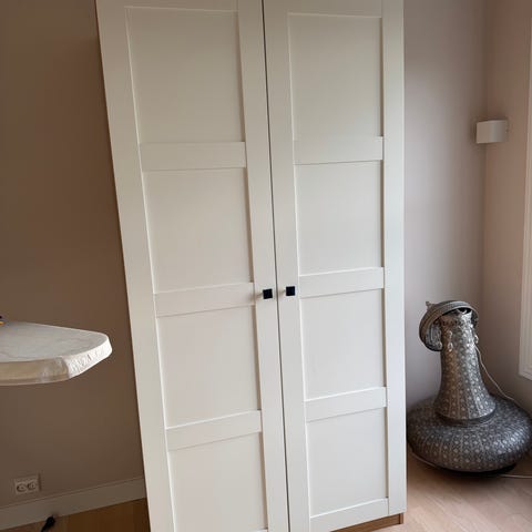 Selger en pent brukt IKEA garderobe i matt hvit til en billig pris. Må demonteres og hentes selv, dessverre kan jeg ikke hjelpe med det. Selger på grunn av plassmangel. Dørene må tas av, og det bør bæres av to personer.