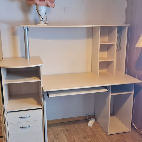 Ok nattbord gis bort. Litt fettflekker i skuffen. Det ene benet er løst.