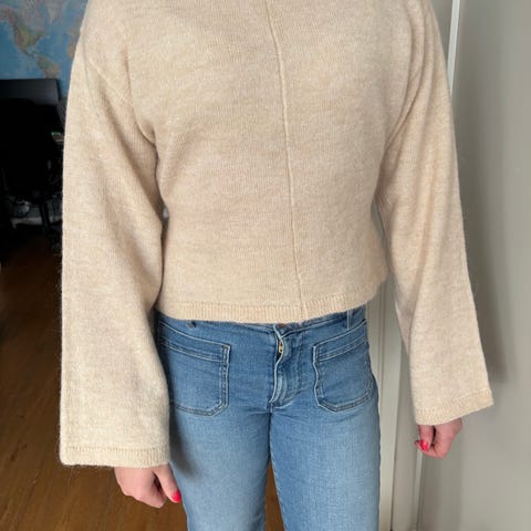 Gina Tricot genser for dame/ungdom i størrelse S. Genseren er rosa og laget i alpakkaull blanding. Modellen har lange ermer og rett passform med normal lengde.