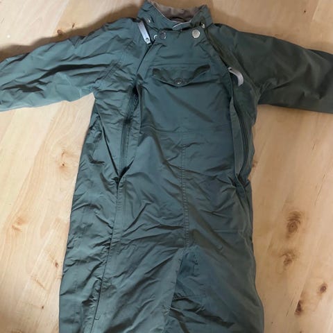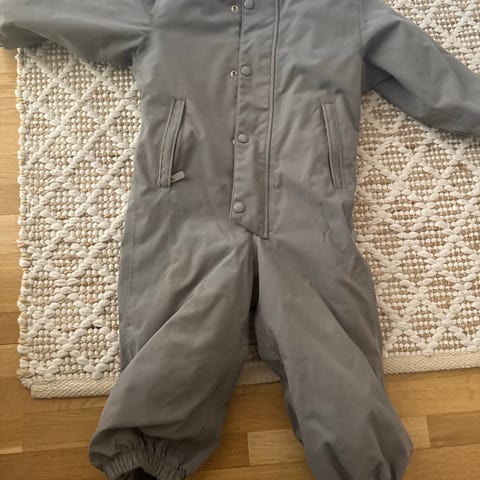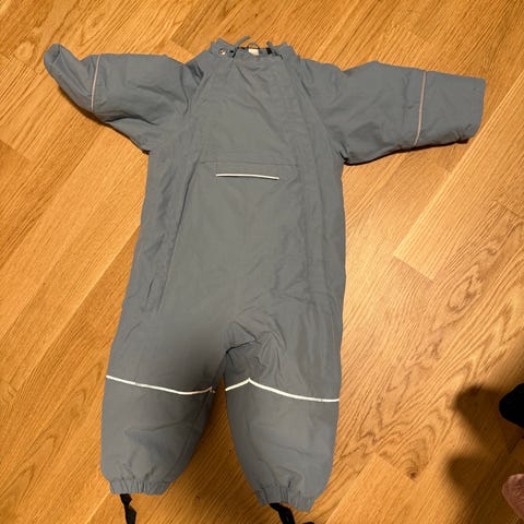 Gråblågrønn vinterdress fra H&M. Brukt som dress nr 2 da lille gikk hos dagmamma, så veldig pent brukt. Strikkene er hele og ingen hull eller flekker, kun normal bruksslitasje. Mangler hette, men ble aldri brukt uansett.
