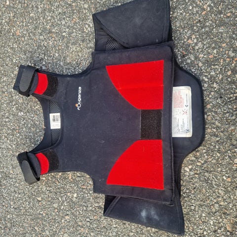 Vesten er en kroppbeskytter for ridebruk, sertifisert etter EN 13158:2018 Level 3.