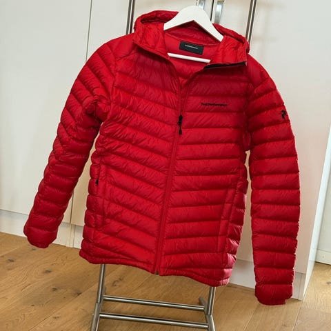Lett og fin varm dunjakke i nydelig farge. Meget pent brukt.
