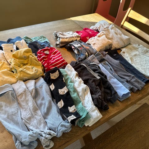 Klær fra Hust & Claire (flere ullbodyer og en ullbukse), gullkorn (body og bukse i sett, pluss snekkerbukse og sele shorts), Newbie (flere kjoler, strikka jakke, heldress, bukser) refleks (ullbodyer ubrukt og bambus sett med body og bukse), Zara (kjole) og flere babyklær for jente i størrelse 68. Pakken inneholder ulike plagg i flere farger og mønstre, blant annet bodyer og bukser med lange ermer og ben. Klærne passer til baby i størrelse 68 og er i flerfargede nyanser som rosa, gul og grå med ulike trykk og motiver. Reima fleecedress er inkludert i pakken.