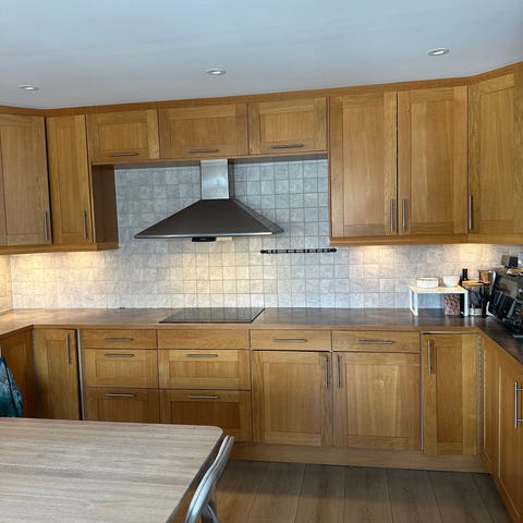 – 1 stk Aubo overskap til hjørne (kan også brukes som rett skap)