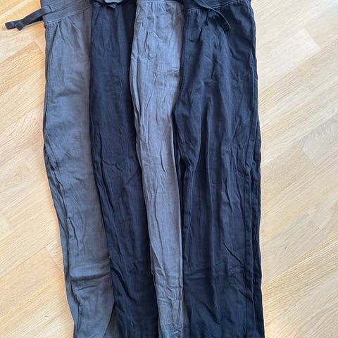 5 joggebukser fra HM str 152. To svarte, to mørk grå, en lys grå. Pent brukt, ingen hull. Hentes på Flisnes eller sendes mot porto.