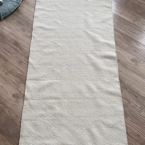 IKEA TIDTABELL teppe i flatvevd utførelse i fargen beige. Størrelse 200x300 cm. Teppe med lav profil som ligger jevnt mot gulvet og passer under spisebord, i stue eller andre oppholdsrom. Nøytral beige farge som er lett å kombinere med ulik innredning.