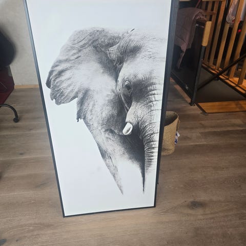 Bildet er ikke hengt opp før, følger med oppheng som kjøper må sette på selv.