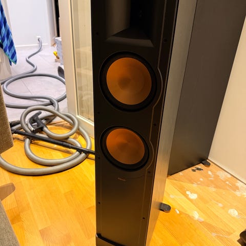 Selger et par Klipsch RP‑280F i den eksklusive Piano Black‑finishen. Dette er toppmodellen i Reference Premiere‑serien fra sin generasjon, kjent for enorm dynamikk, høy effektivitet og ikonisk Klipsch‑lyd med kraftig bass og detaljert diskant.
