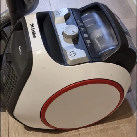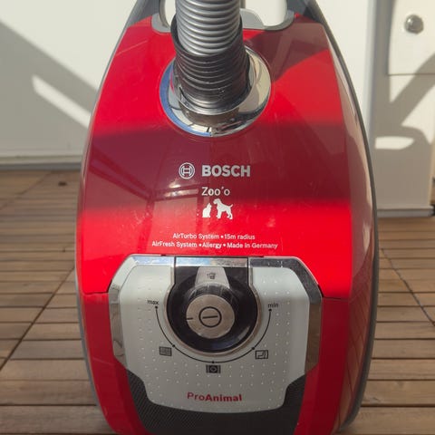 Støvsugeren har regulerbar effekt, stor rekkevidde og følger med munnstykker for både gulv og tepper. Brukt, men fungerer som den skal. Normal bruksslitasje.