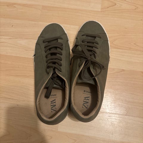 Zara Man sneakers/joggesko i størrelse 43. Skoene er i grå mesh med sorte detaljer og snøring foran. Overdelen er i pustende tekstilmateriale, med polstret hælkappe for økt komfort. Sålen er i syntetisk materiale med hvit mellomsåle og mørk yttersåle. Modellen er beregnet på herre og passer til hverdagsbruk og lett fritidsbruk.