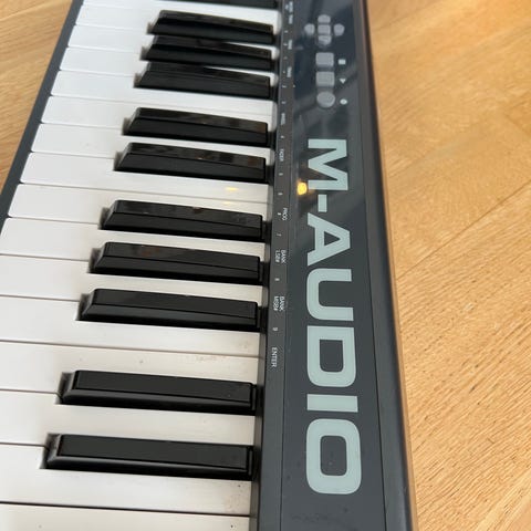 M-Audio Keystation 88 MIDI-keyboard med 88 fullstørrelse tangenter i pianostil. Keyboardet er i svart utførelse og er beregnet for tilkobling til datamaskin eller annet MIDI-utstyr for styring av programvareinstrumenter og opptaksløsninger. Egnet til øving, komponering og innspilling i hjemmestudio eller på øvingsrom.