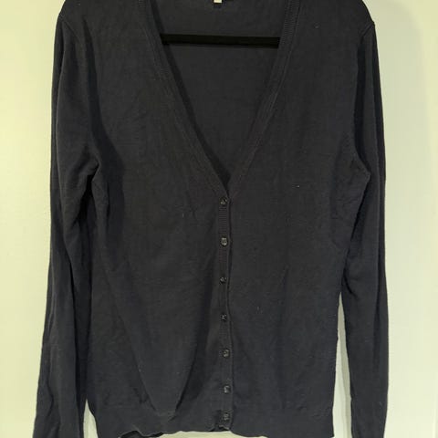 Days Like This cardigan i størrelse M. Cardiganen er svart og laget av bomull. Den har lange ermer og knepping foran. Passer til hverdagsbruk eller som et ekstra lag over topp eller kjole.