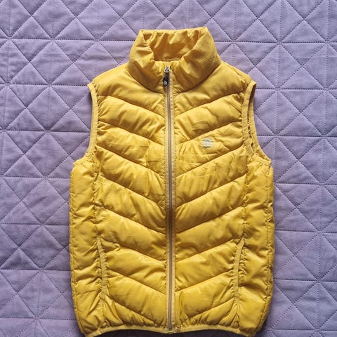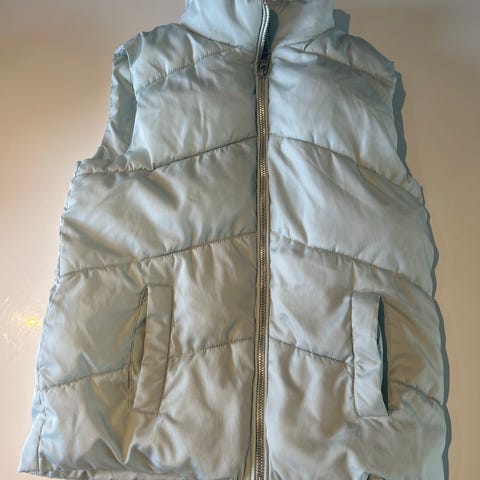 Varm og lett vest med fint skogsmønster og avtakbar hette. Lite brukt og i veldig god stand. Perfekt til kjølige dager. 122-128