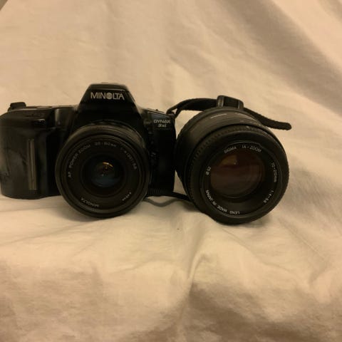Noe rusk bak fremre glass, muligens separasjon?! Liten brennflekk på bakre gardin pga motsol. Selges derfor billig..