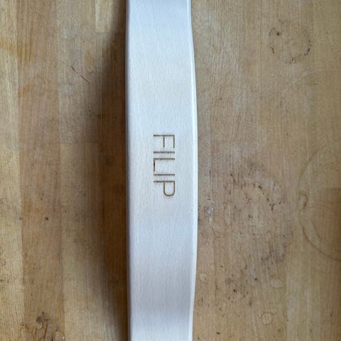 Gravert ryggstøtte til Sokke Tripp Trapp barnestol i whitewash. Navn: Anna.