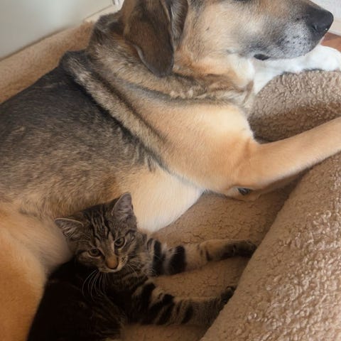 Vet ikke hvordan de reagerer på barn, da de ikke har vært mye rundt barn. Tolererer hunder, og de har vært rundt en del hunder men tar litt tid før de blir komfortable med hunden.