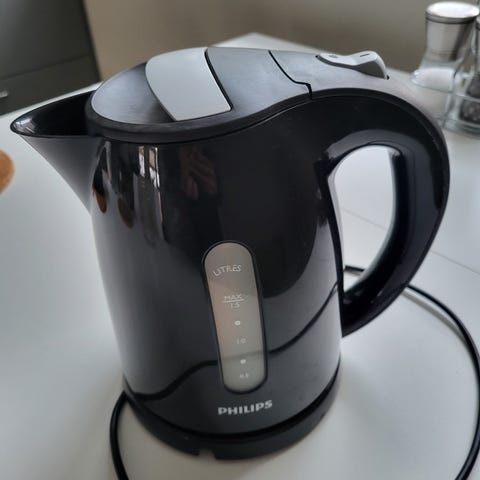 Rommer 1,75 liter og fungerer som den skal. Den slås automatisk av når vannet koker.