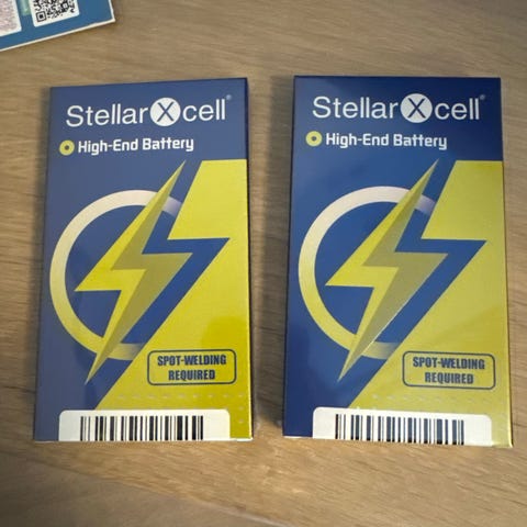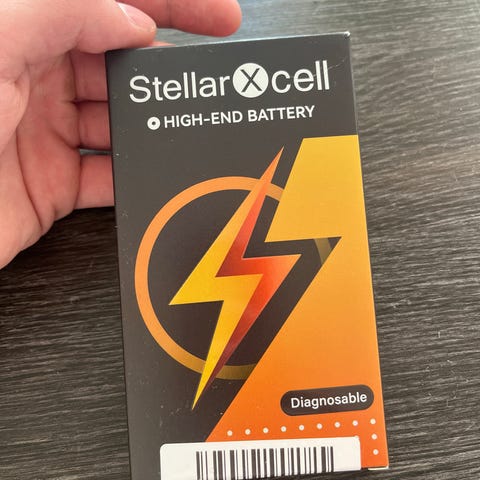StellarXcell Ultra Cell batteri til iPhone 14. Batteriet er merket som høyytelsesbatteri og leveres som løs celle som krever punktsveising ved montering. Passer kun til iPhone 14 ifølge emballasjen. Egnet som erstatningsbatteri ved bytte av defekt eller slitt batteri i kompatibel telefonmodell. Leveres i original eske med produktmerking og spesifikasjoner på emballasjen.
