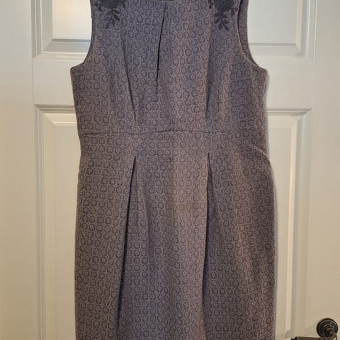 Noa Noa festkjole for dame i størrelse M. Kjolen er beige og laget i viskose. Den har ermeløst snitt, V-utringning og markert liv. Stoffet faller lett og har et lagdelt, plissert uttrykk. Lengden går omtrent til leggen, avhengig av høyde. Passer som pen- og selskapskjole. Glidelås i siden.