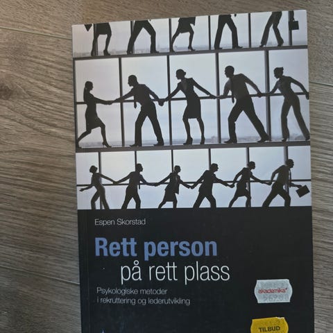 Epsen Skorstad «Rett person på rett plass» lærebok innen psykologi og utdanning. Boken tar for seg psykologiske metoder i rekruttering og lederutvikling, med vekt på hvordan man vurderer og matcher personer til stillinger og roller i arbeidslivet. Innholdet omfatter blant annet jobbvurdering, intervjumetodikk, psykologiske tester og vurderingsverktøy, samt praktiske eksempler fra organisasjons- og arbeidspsykologi. Egnet som pensum og faglitteratur for studenter og fagpersoner innen HR, ledelse, organisasjonspsykologi og rekruttering.