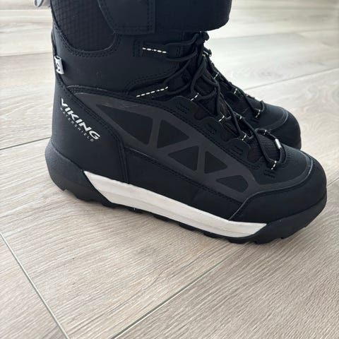 Viking vinterstøvler i størrelse 41. Modellen er ankelhøy med borrelås og lisser for justering. Skoene er i grønn farge med mørke og lyse detaljer, og har kraftig yttersåle med grovt mønster for godt grep. Egnet som varme og stabile vintersko til hverdagsbruk og uteaktiviteter. Svært pent brukt. Ny pris 1000. Selges for kr 400.