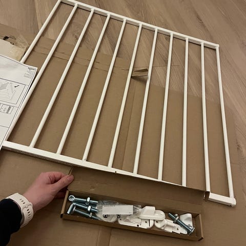 Sprinkelseng fra ikea ved navn SNIGLAR. Den er modifisert slik at barnet skal kunne gå ut og inn som hen vil. Det går likevel an å sette den inntil en vegg slik at den fungerer som en vanlig sprinkelseng. Det følger med en madrass av merket Wonderland.