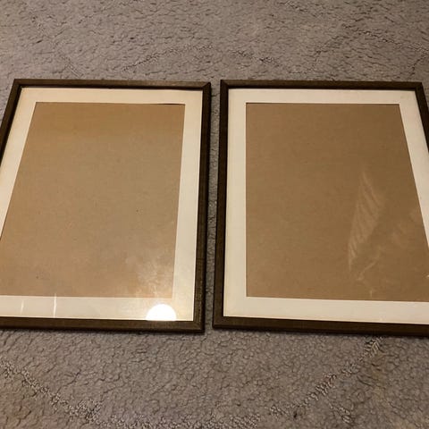 Pent brukte ( 1ny) trerammer i forskjellige strl . Eldre design . Derav 4 stk diplomstrl 21x30. Selges gjerne samlet kr 300,-