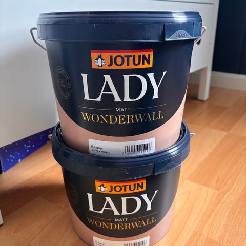 Selger en 9 liter og en 2,7 liter Jotun Lady Wonderwall maling. Fargekode vanilje 1519/S1005-Y30R. Kjøpte for mye. De er helt uåpnet og kjøpt for ca 3 uker siden.