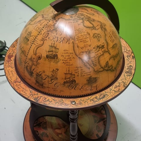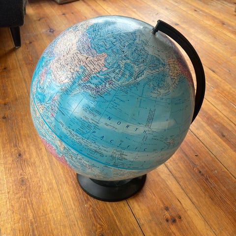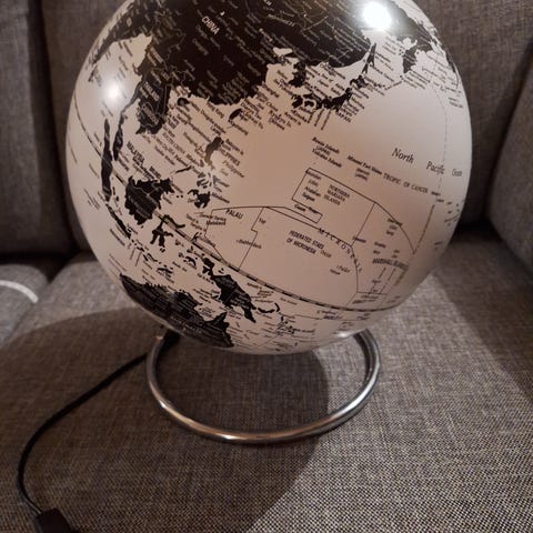 Selger en flott liten globus. H 26 cm. Den er helt i orden