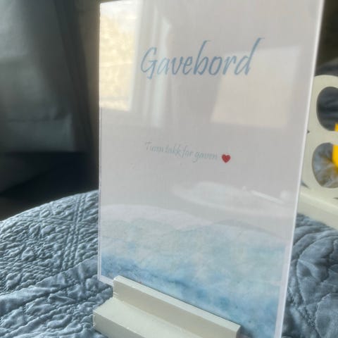 Dekorativ banner til gavebordet i bryllup eller lignende.