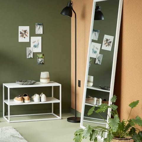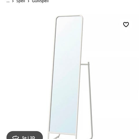Flott helfigursspeil i hvitbeiset eikefiner. IKEA speil med rektangulær form og ramme. Speilet kan henges både vertikalt og horisontalt på vegg. Passer i for eksempel gang, soverom eller stue som helfigurspeil eller som veggspeil over møbler. Nøytralt design som gjør det enkelt å kombinere med ulike innredningsstiler.