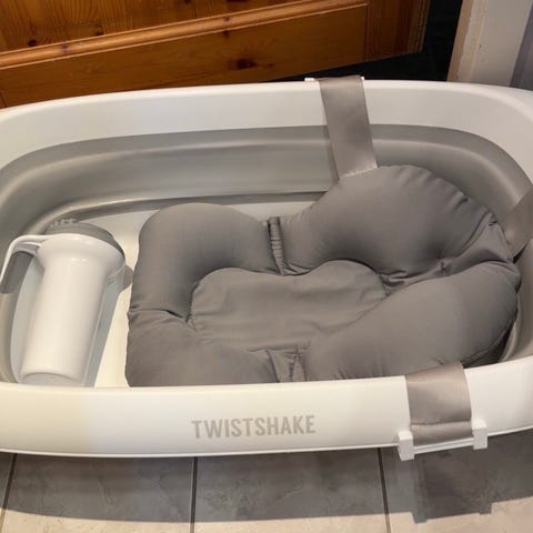 Twistshake sammenleggbart babybadekar med badepute i gråtoner.