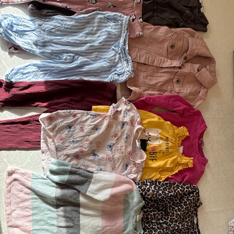 Ulltøy til jente. Størrelse 68-74. 4 bodyer, 4 stillongser, to ulldresser, og en buksedrakt. Buksedrakten har et lite hull som lett kan sys. Fra lilli og Leopold, devold, Cubus joha, reflex, polarn og pyret.