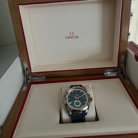 Flott hvit/grå urskive som skifter utseende med hvordan lyset treffer. Original Omega gummireim med fin tekstur. Klokken fremstår meget pen og er sjeldent brukt, aldri som hverdagsklokke. Veldig lite hairlines, men det er et lite merke på urkassen, rett ved krona. Vanskelig å ta bilde av, men kan ses på noen av bildene.