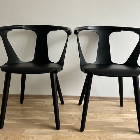 Den ene stolen har en sprekk, men begge stolene er robuste og i god stand.