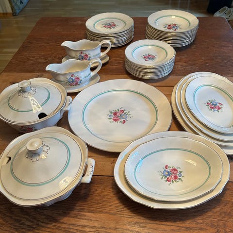 Servise til 12 personer,med fat, sausnebb og teriner fra 1920 tallet