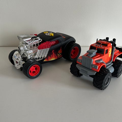 2 små monster truck biler selges