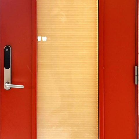 Andre dør er fra 2018, denne har og montert Yale Doorman fra samme år.