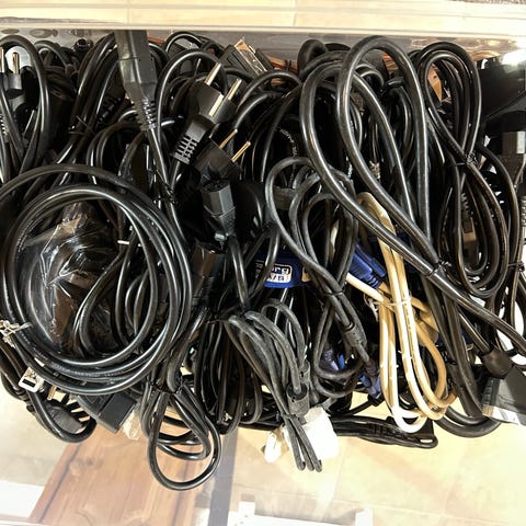 Grunnet at kona vil rydde i kjelleren selges samlet en rekke audio/video kabler av ulike typer og størrelser.